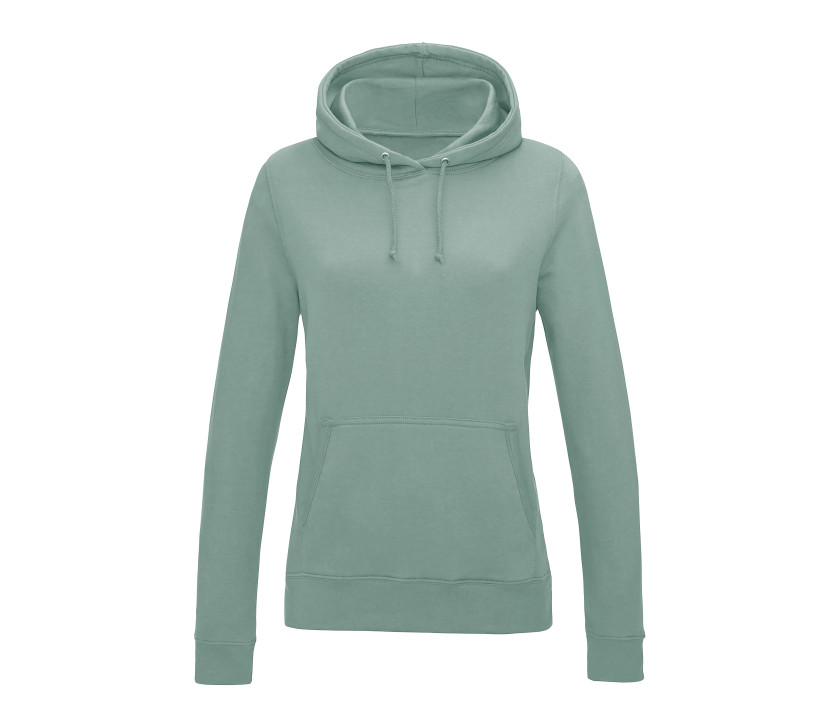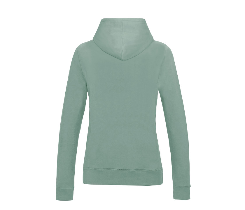 Kapuzensweatshirt für Damen. Weibliche Passform. Doppelnähte. Gefütterte Kapuze. Zugbänder in gleicher Farbe. Kängurutasche. Rippenbündchen an Bund und Ärmeln. Innen gebürstet. Ablösbares Etikett.