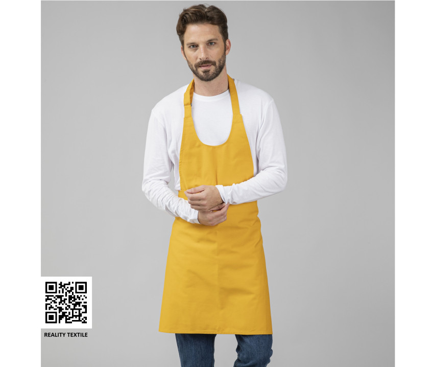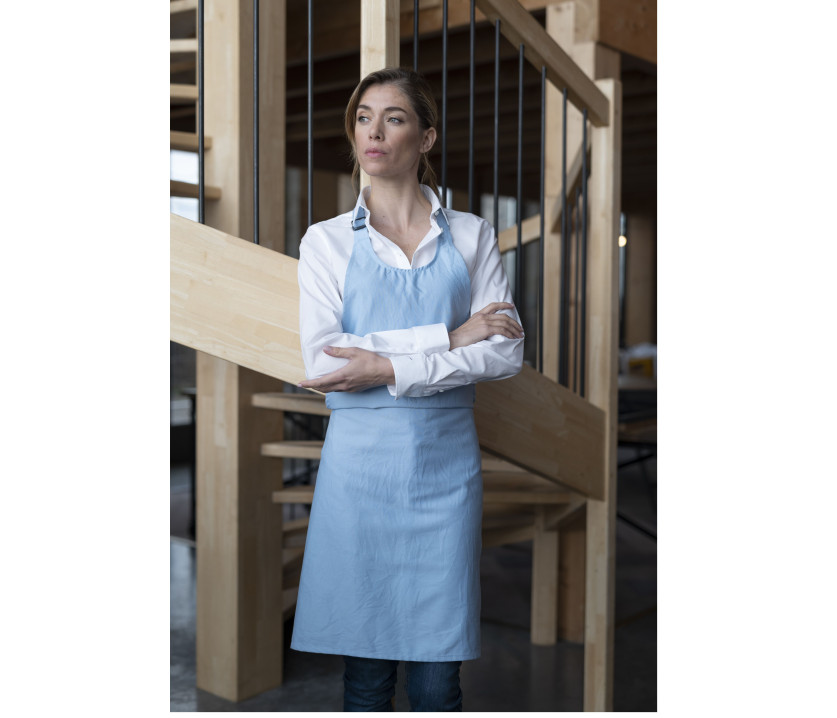 - Schürze ohne Taschen, Höhe 90 cm, Breite 75 cm. Kunststoffschnalle zum Verstellen des Trägers. Waschbar bis 60 °C.