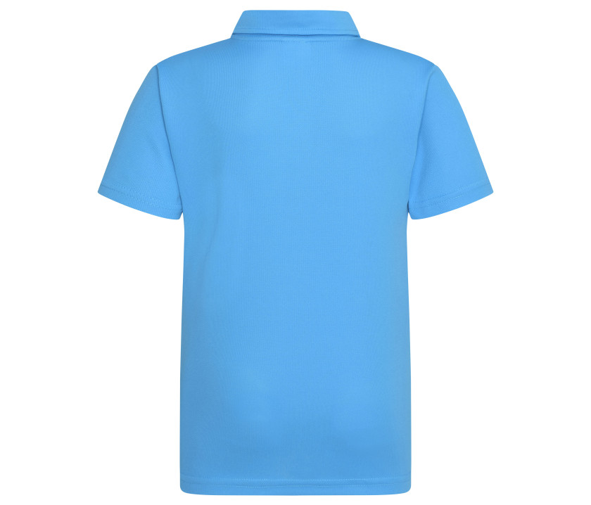 Kinder-Polohemd aus 100 % Neoteric™ Polyester, ein leichtes, strukturiertes Material mit atmungsaktiven und feuchtigkeitsableitenden Eigenschaften. Lässige Passform. Gerade Ärmel. Knopfleiste mit 2 farblich passenden Knöpfen. Nackenband am Kragen. Doppelnaht. Ablösbares Etikett. UPF 30+ UV-Schutz.