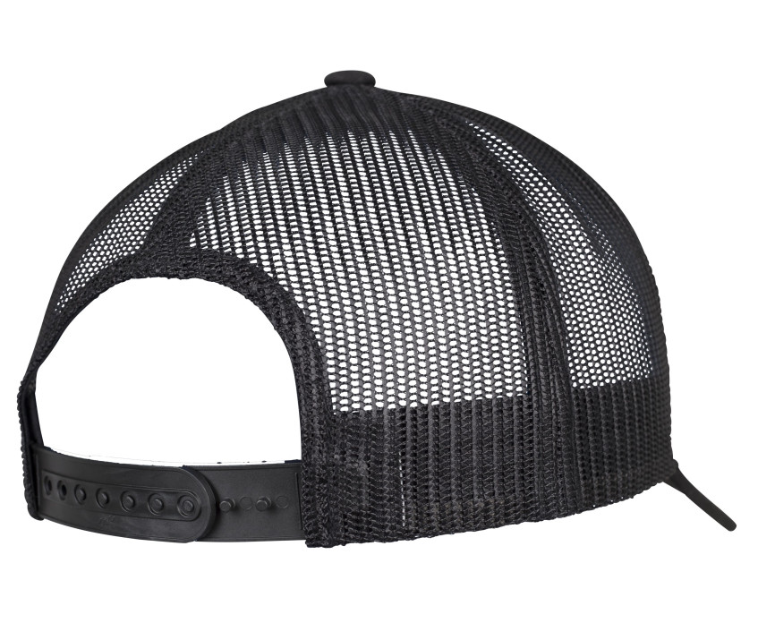 5 Panels. Gebogenes Schild. Verschluss mit Druckknopflasche aus PVC. Strukturierte Kappe. Unterseite des Schilds in gleicher Farbe. 8 Nähte am Schild. Netzgewebe hinten und an den Seiten. Geeignet für Kopfumfänge zwischen 55 und 60 cm.