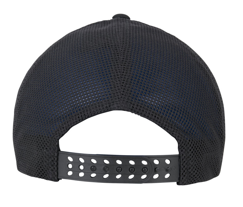 6 Panels. Netzgewebe hinten und an den Seiten. 6 Nähte am Schild. Verschluss mit Druckknopflasche aus PVC. Gebogenes Schild. Geeignet für Kopfumfänge zwischen 52 und 63 cm.