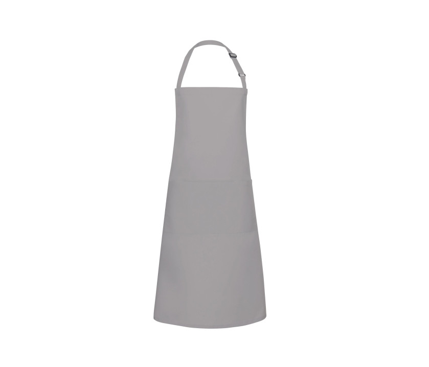 Latzschürze mit Bändern aus dem gleichen Material. Verstärkte Nähte. Länge der Bänder bis 70 cm verstellbar. Bänder mit Schnallen. Aufgesetzte Tasche mit 2 Fächern (40x20 cm). Größe: 75x90 cm.