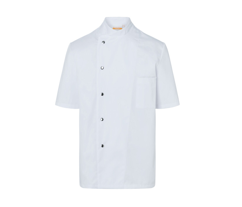 Klassische Passform. Kurze Ärmel. Aufgesetzte Brusttasche mit Stiftfach. 5 Druckknöpfe. Jacke vorgewaschen, waschecht, pflegeleicht. Industriewäschetauglich.