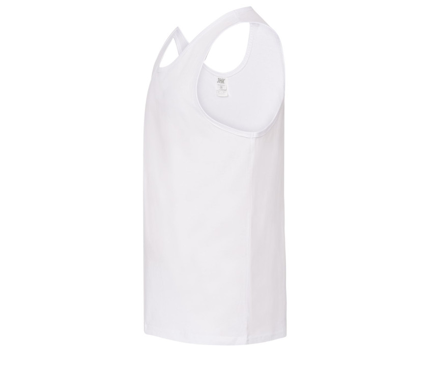 Hals- und Armausschnitte aus Stoff. Doppelte Steppnaht am Hals, Schultern und Bund. Ablösbares Etikett.