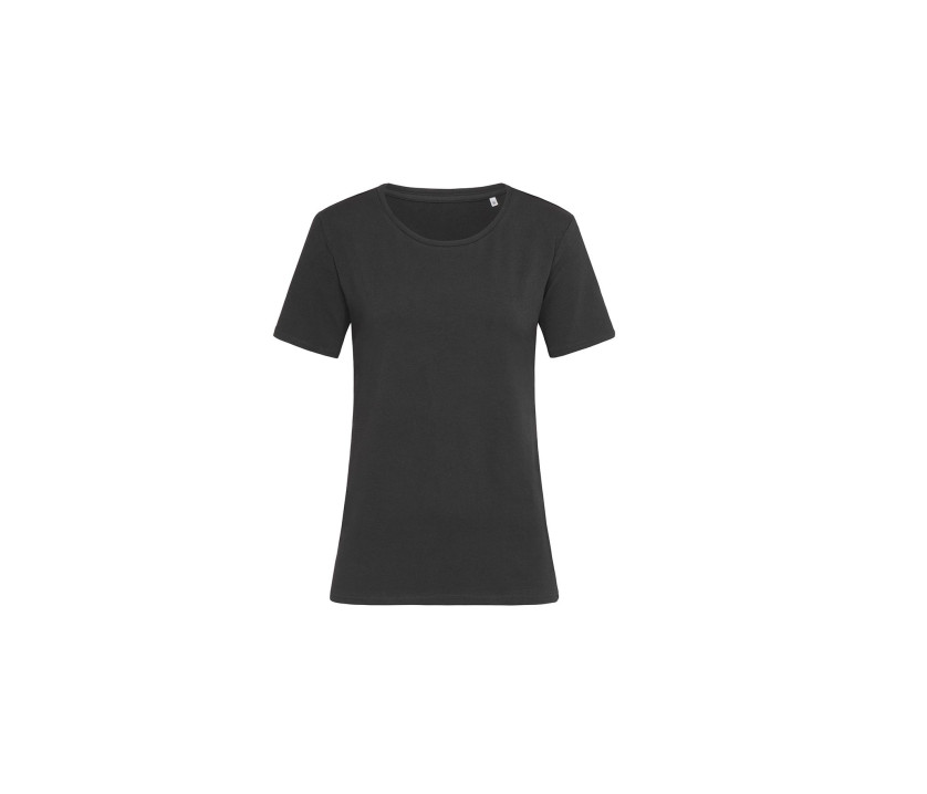 Rundhals-T-Shirt für Damen - Verstärkte Nähte an den Schultern. Schmaler Kragen aus demselben Material. Seitliche Nähte.