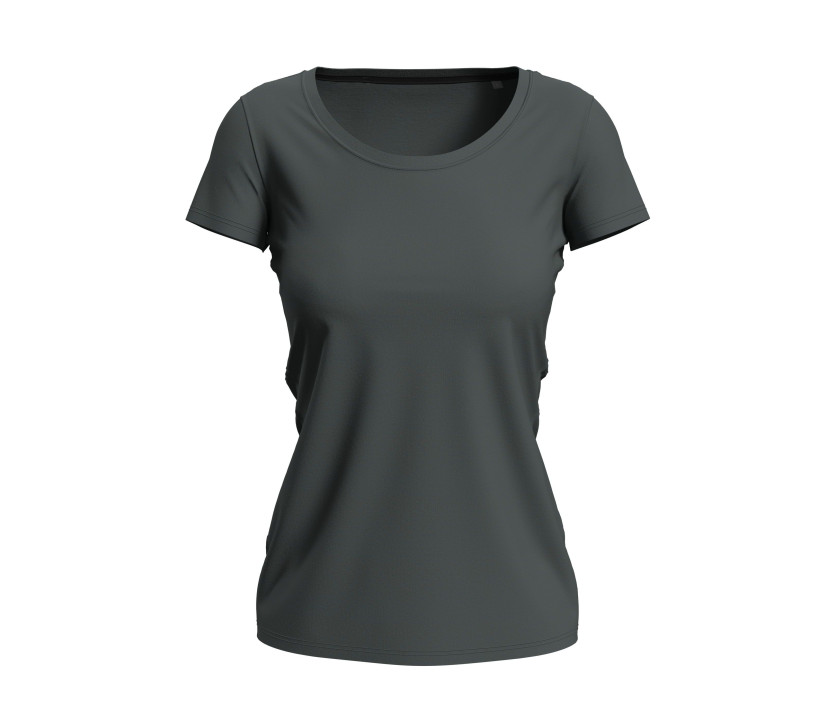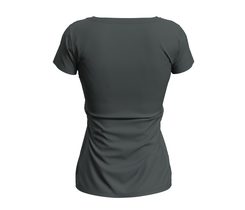 Rundhals-T-Shirt für Damen - Körpernahes T-Shirt. Kontrastiertes Nackenband. Weiter Halsauschnitt. Verstärkte Nähte an den Schultern.