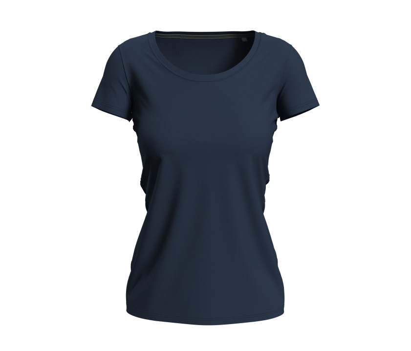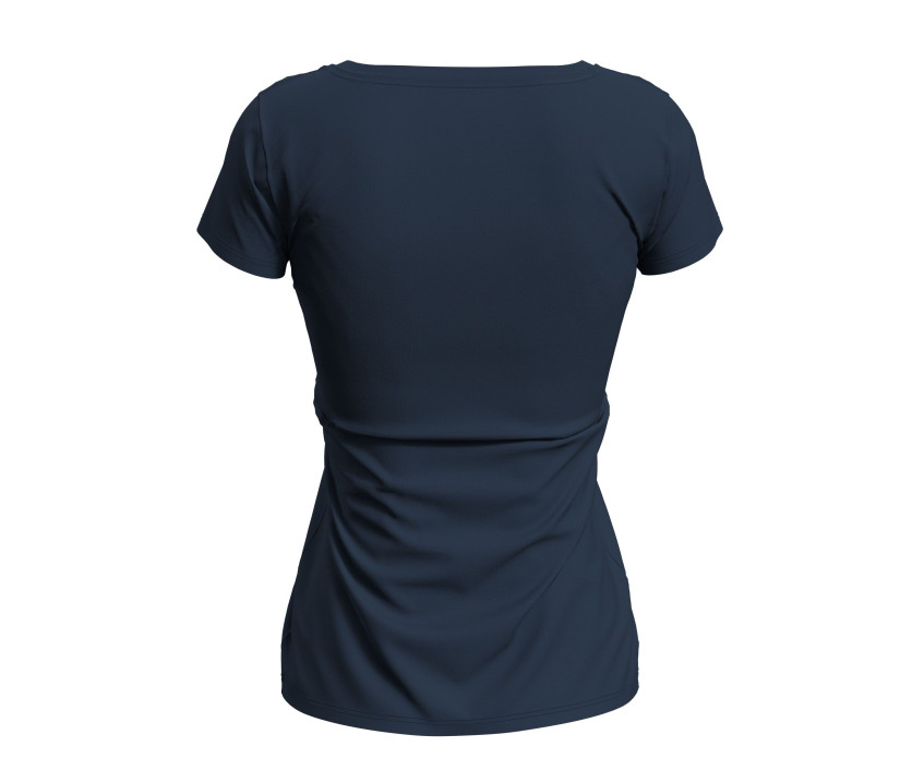 Rundhals-T-Shirt für Damen - Körpernahes T-Shirt. Kontrastiertes Nackenband. Weiter Halsauschnitt. Verstärkte Nähte an den Schultern.