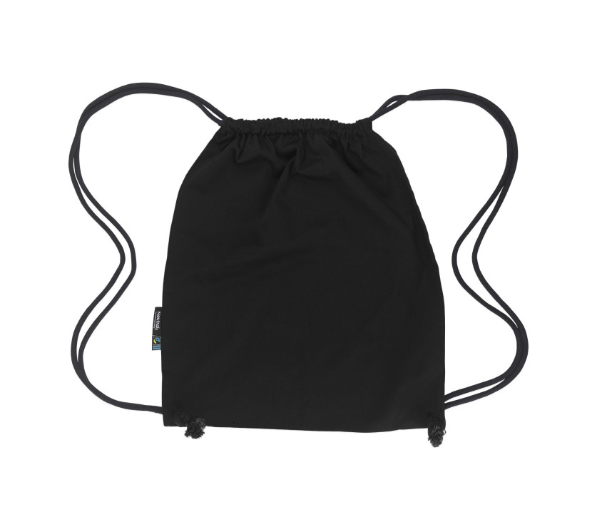 Turnbeutel - Stoff aus Baumwolltwill. Dicke Kordeln. Etiketten Neutral und Fairtrade an der Seite angenäht.