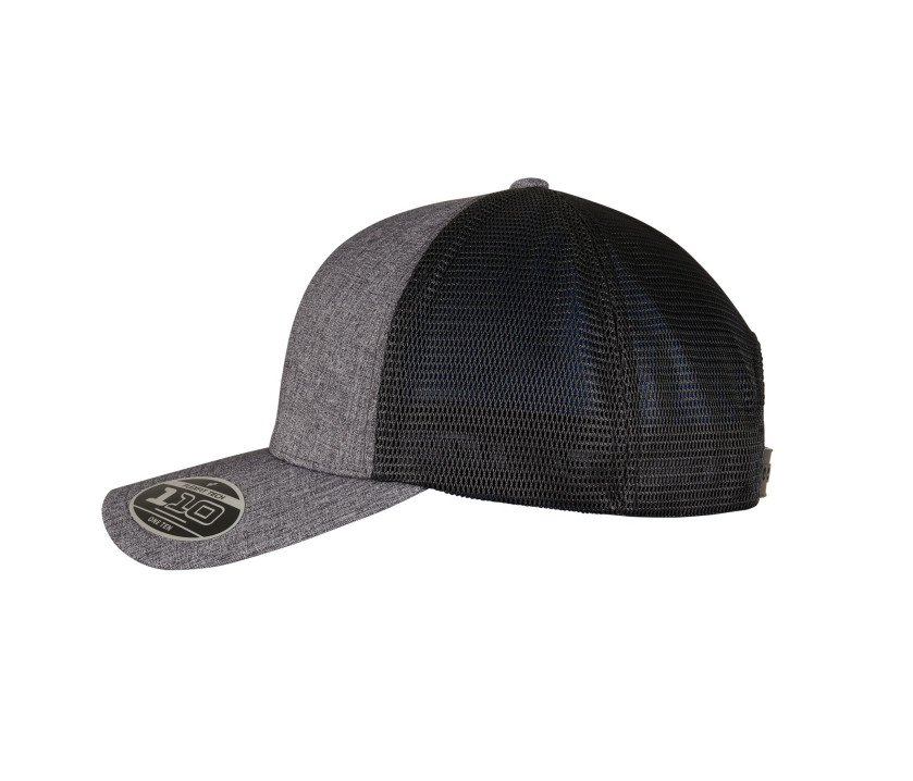 6 Panels. Gebogenes Schild. Rücken- und Seitenpaneele aus Mesh. Verschluss mit PVC-Band. 8 Nähte am Schild. Strukturierte Kappe. Unterseite des Schilds in Silber. Geeignet für Kopfumfänge zwischen 52 und 63 cm.