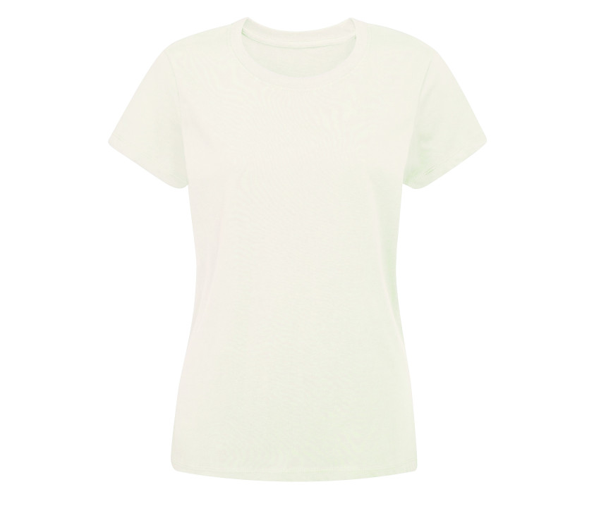 Damen-T-Shirt aus biologischer Baumwolle - Moderne Passform. Schmaler Kragen mit Rippenbündchen. Abnehmbares Etikett.