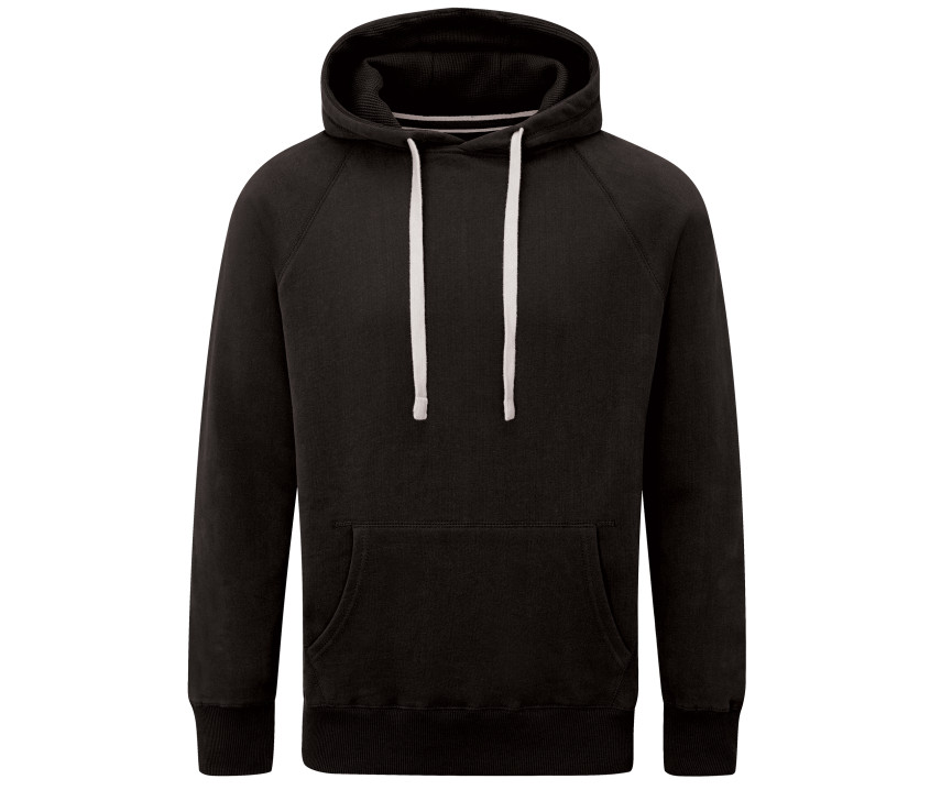 Innen angeraut. Soft-Touch. Breite Rippenbündchen an Ärmeln und Bund. Kängurutasche. Raglanärmel. Innenseite der Kapuze aus Waffelstoff. Nackenband. Breites flaches Zugband. Ablösbares Etikett.
