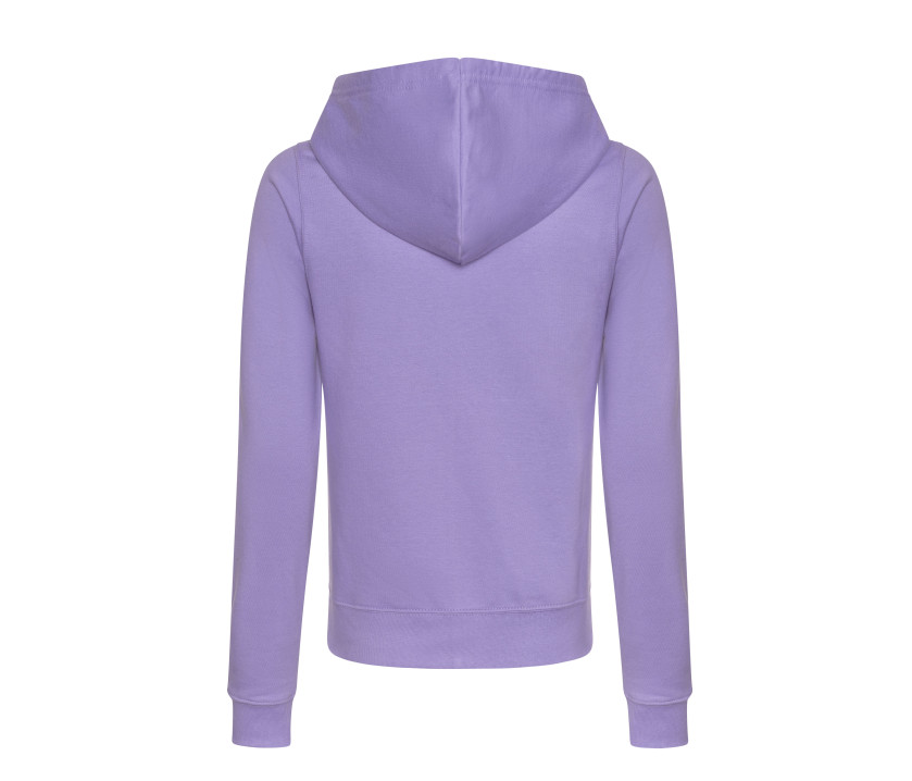 Lässiger Schnitt für Frauen. Mit Kunststoff überzogener Reißverschluss YKK. Steppung mit Doppelnadel. Gefütterte Kapuze. Ton in Ton gehaltene Kordelzüge. Kängurutasche. Abnehmbares Etikett. Gebürstete Innenseite. Ärmelbündchen und Taille aus Rippstrick. Weicher Stoff aus Baumwolle.