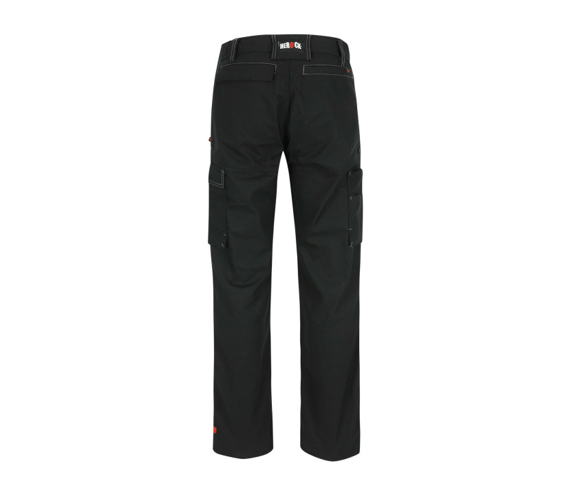 Multitaschen-Hose, in beide Richtungen dehnbar. 2 Seitentaschen. Handy-Tasche in der Oberschenkeltasche. 2 Taschen auf den Oberschenkeln. Zollstocktasche. Stifttasche. 2 Gesäßtaschen. Taschen auf Höhe des Knies. Saum mit verlängertem Saum. Wasserabweisende Beschichtung der Oberfläche. Reflektierender Aufdruck auf der Oberschenkeltasche. Zertifiziert nach EN ISO 13688:2013 und EN ISO 14404:2004+A1:2010 Typ 2 Level 0 in Kombination mit dem HEROCK® Knieschutz.