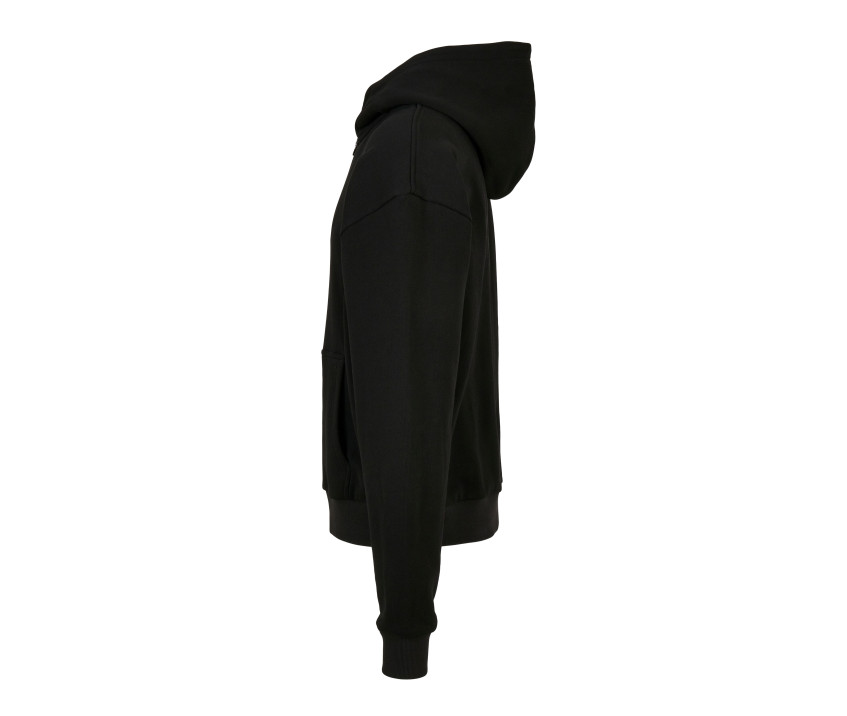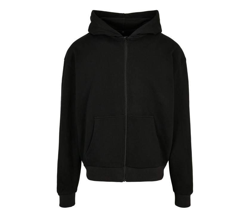 Großer Reißverschluss aus Metall. Dicke Rippstrickbündchen an Ärmeln und Taille. Klassische Kapuze, aber ohne Kordelzug. Kängurutaschen.