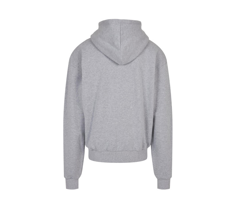 Großer Reißverschluss aus Metall. Dicke Rippstrickbündchen an Ärmeln und Taille. Klassische Kapuze, aber ohne Kordelzug. Kängurutaschen.