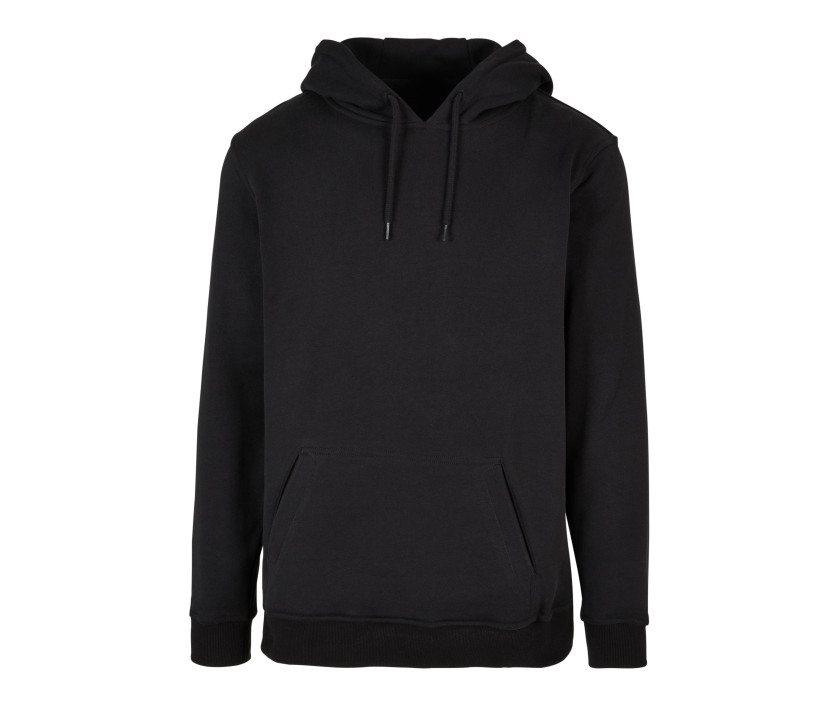 Französischer Frottee. Kängurutasche. Große Kapuze. Breite Rippenbündchen an Ärmeln und Saum.