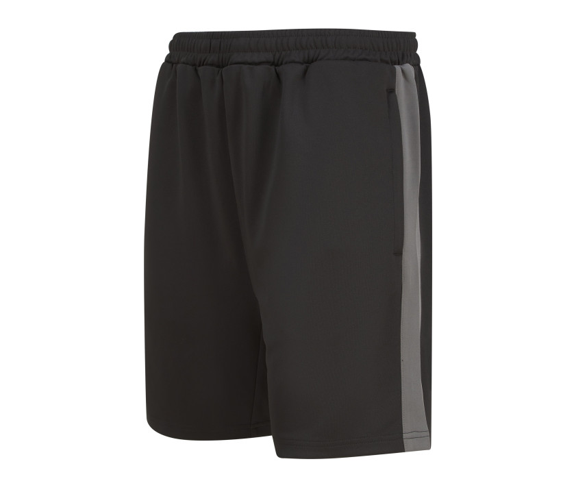Strickshorts für Erwachsene mit Reißverschlusstaschen - Elastischer Bund und innenliegende Kordelzüge. Seitliche Blenden in Kontrastfarbe. Taschen mit Reißverschluss an den Seitennähten.