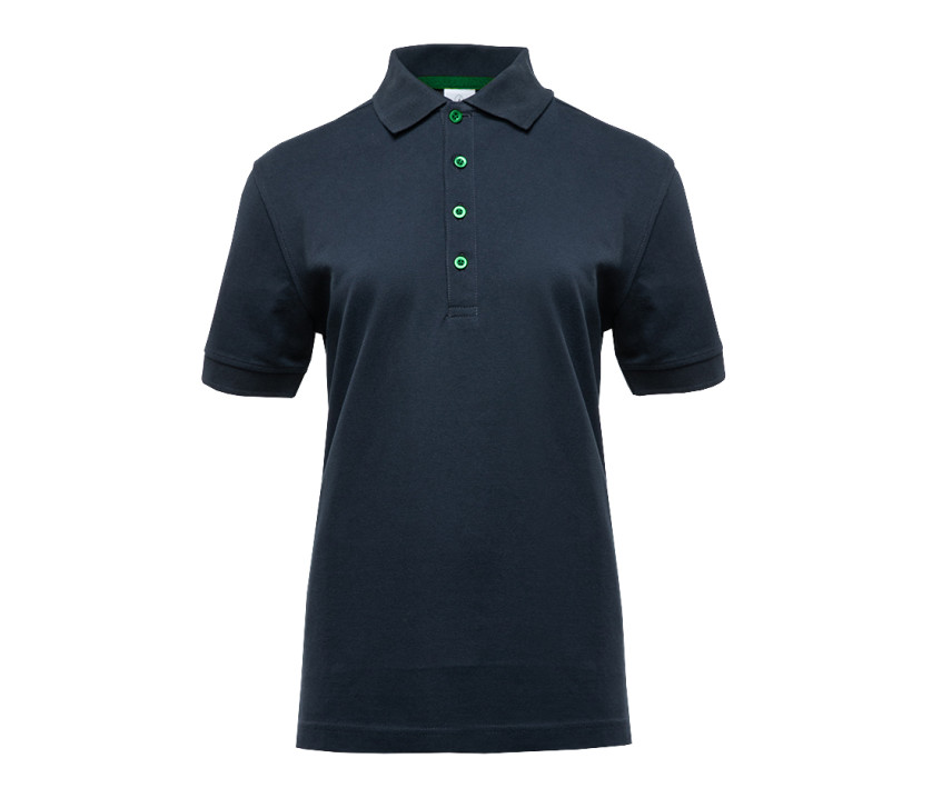 Damen-Poloshirt mit Kontrastknöpfen - Nackenband in Kontrastfarbe. Gerippte Manschetten und Kragen. 4 Knöpfe.