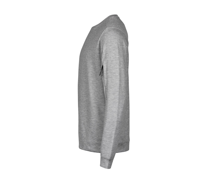 Rundhalsausschnitt. Ärmeltasche mit Reißverschluss. Ärmelbündchen aus gleichem Stoff. SBS-Reißverschluss.