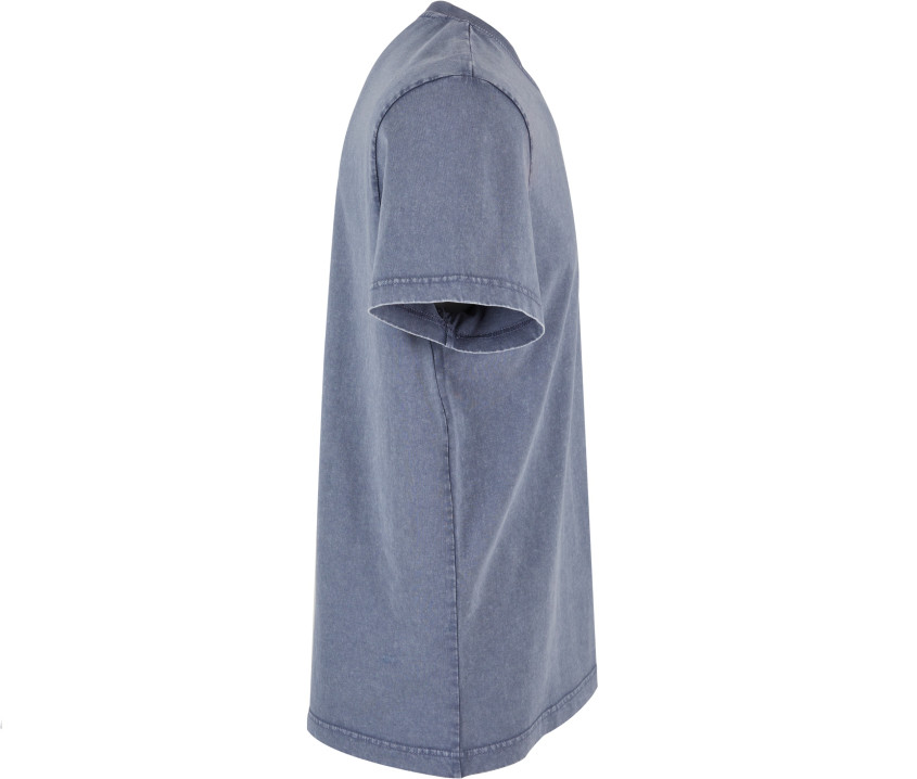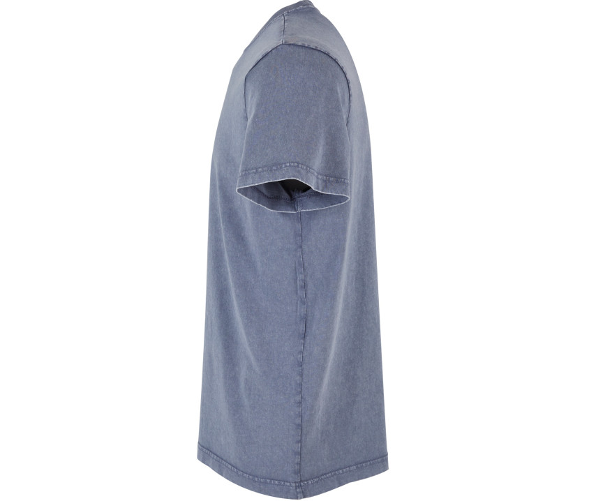 Klassischer Schnitt. Gerippter Rundhalsausschnitt. Säureverblasstes T-Shirt. Einsatz in den Ärmeln. Seitliche Nähte.