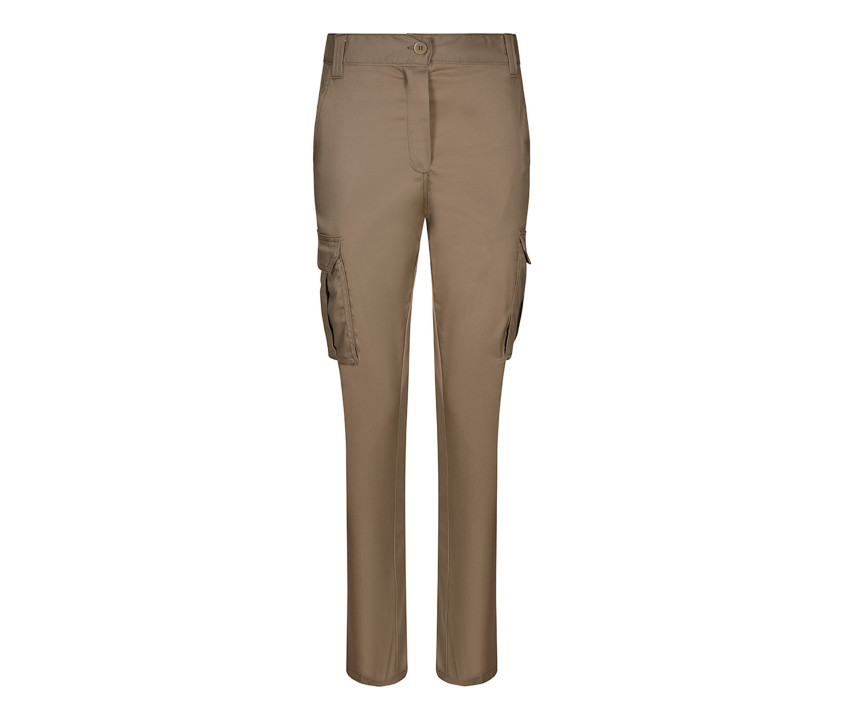 Schmale Passform. Reißverschluss mit Knöpfen. Kontrastierende Nähte. Elastischer Bund. Doppelte Sicherheitsnähte. 6 Taschen: 2 Seitentaschen, 2 Seitentaschen mit Patte und Velcro®, 2 Gesäßtaschen.