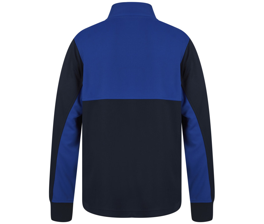 1/4 Zip.Einsätze in Kontrastfarbe an den Ärmeln. Reißverschluss in Kontrastfarbe. Seitentaschen mit Reißverschluss. Weiß für den Sublimationsdruck geeignet.