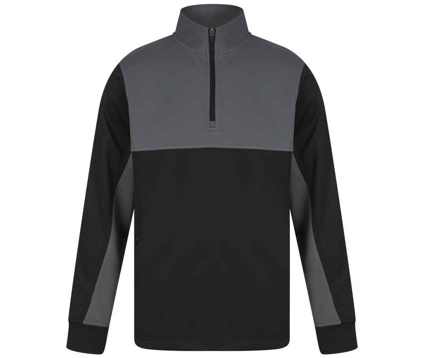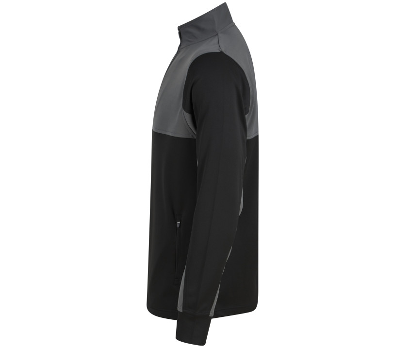 1/4 Zip.Einsätze in Kontrastfarbe an den Ärmeln. Reißverschluss in Kontrastfarbe. Seitentaschen mit Reißverschluss. Weiß für den Sublimationsdruck geeignet.