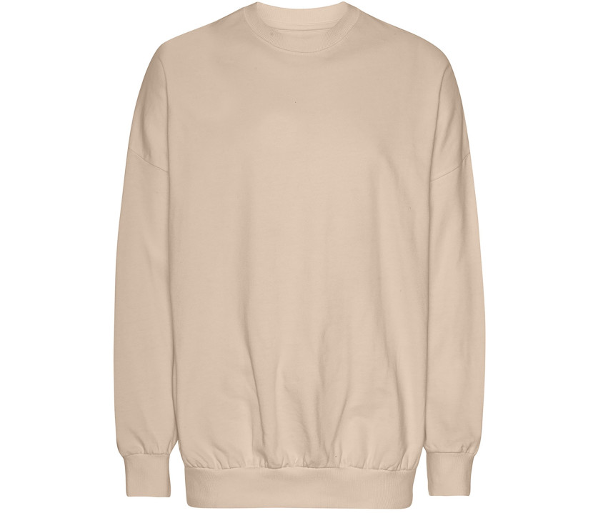 - Überschnittene Schultern. Gestrickter Saum, Kragen und Ärmel. Gebürstetes Vlies.
