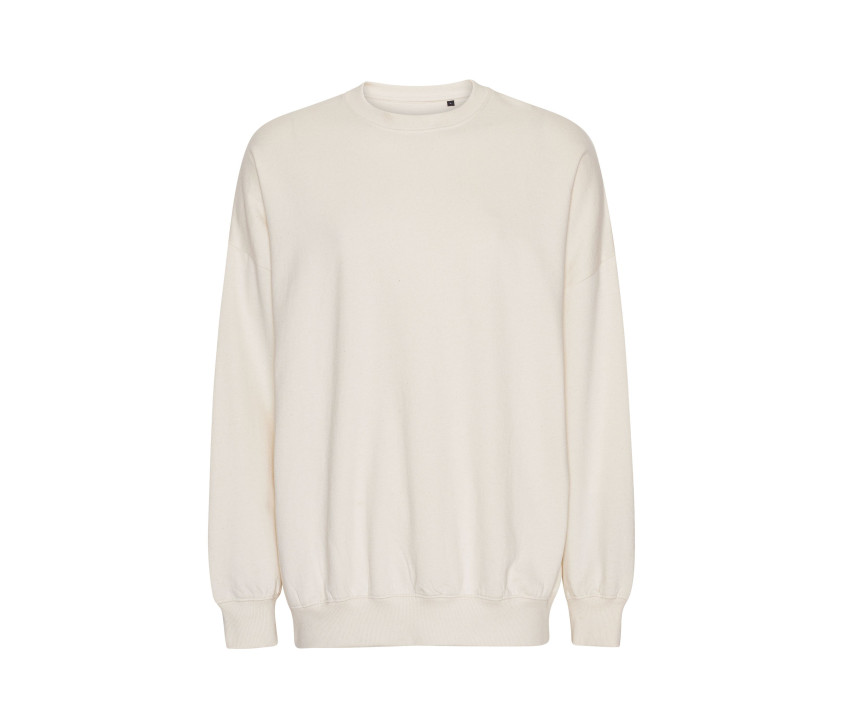 - Überschnittene Schultern. Gestrickter Saum, Kragen und Ärmel. Gebürstetes Vlies.