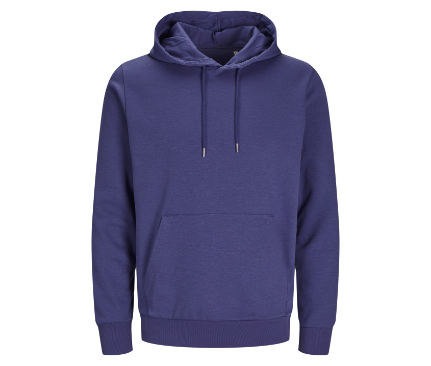 Kapuze mit Kordelzug und Metallspitzen. Kängurutasche. Eingesetzte Ärmel.