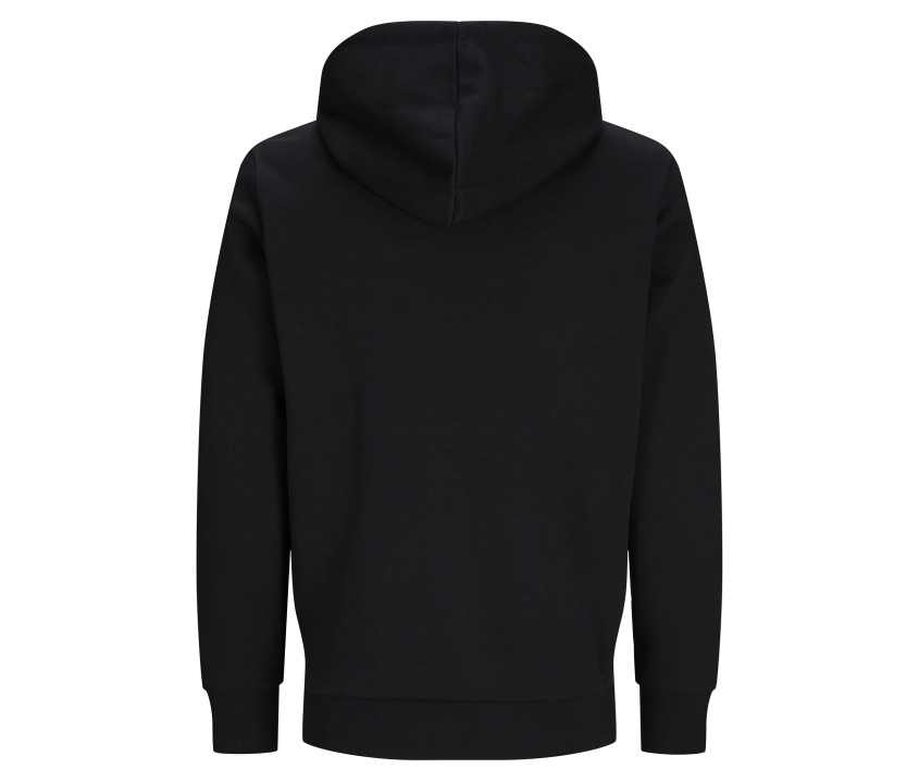 Metall-Reißverschluss. Kapuze mit Kordelzug und Metallspitzen. Kängurutasche.