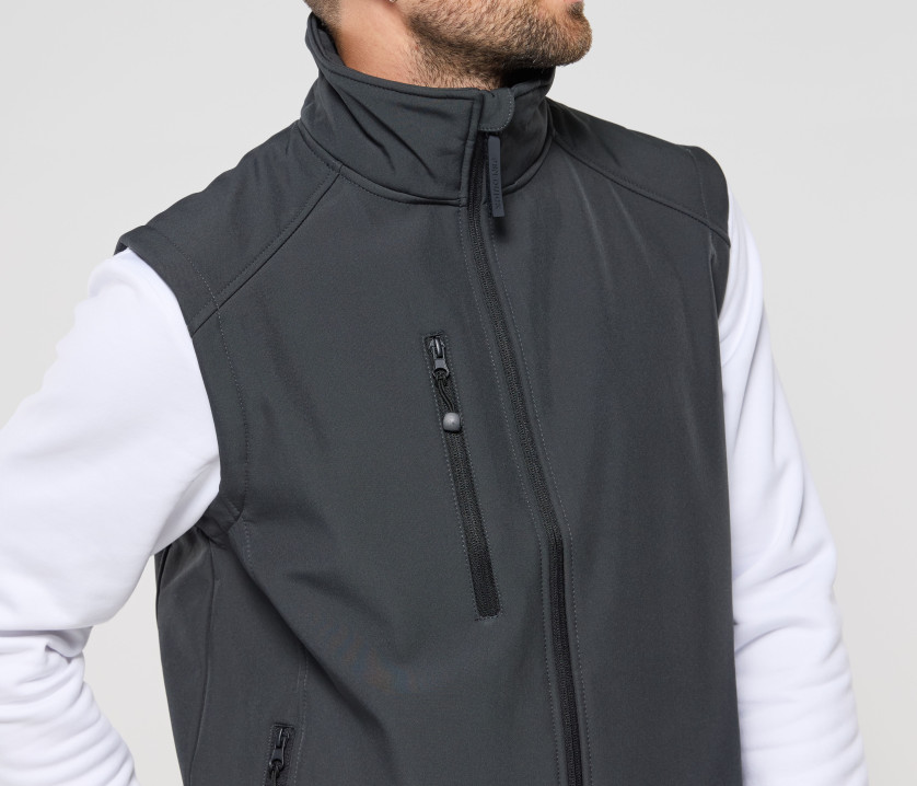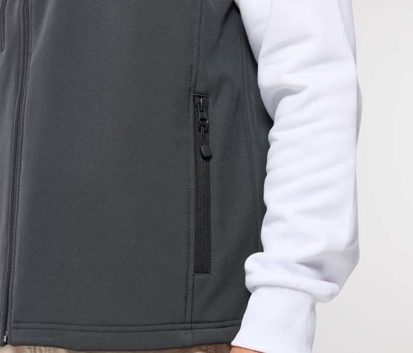 3-lagiges kaschiertes Gewebe mit atmungsaktiver und wasserdichter Membran. 2 Seitentaschen mit Reißverschluss, 1 Brusttasche.