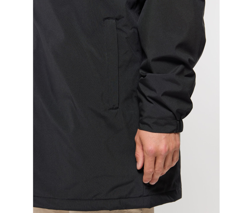 Langer Unisex-Parka. 2 Seitentaschen, 1 Innentasche. Zugang zu Rücken- und Brustmarkierungen. Elastische Ärmelbündchen. Wasserdichtigkeit: 4000-5000mm. Wattierung und Futter aus 100% recyceltem Material.