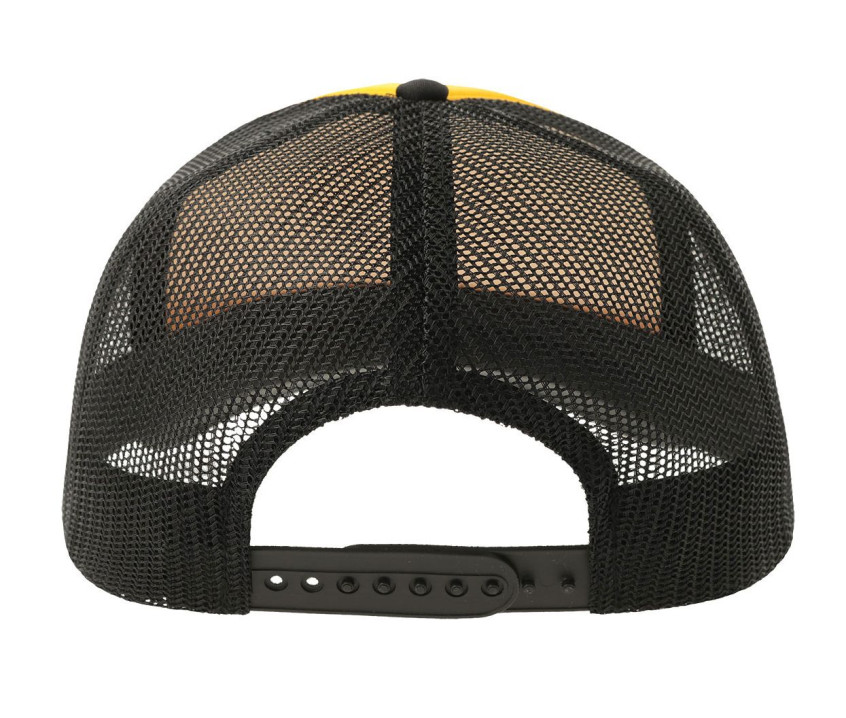 5 Panels. Verschluss mit PVC-Noppen. Netz auf der Rückseite und an den Seiten. Vorgeformtes Visier. Vorderseite und Visier gepolstert. 6 Nähte auf dem Visier. Perfekt für Siebdruck, Stickerei oder Sublimation (Polyesterpaneel). Kopfumfang: 58cm. Schirm mit Kunststoffkernstruktur gefertigt.