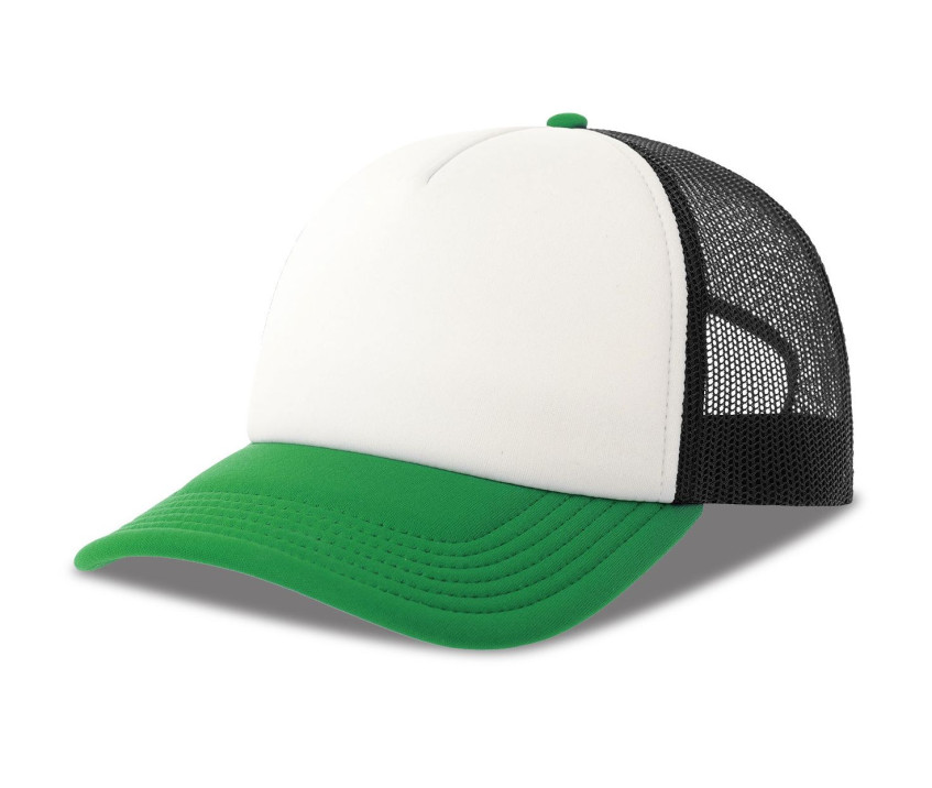 5 Panels. Verschluss mit PVC-Noppen. Netz auf der Rückseite und an den Seiten. Vorgeformtes Visier. Vorderseite und Visier gepolstert. 6 Nähte auf dem Visier. Perfekt für Siebdruck, Stickerei oder Sublimation (Polyesterpaneel). Kopfumfang: 58cm. Schirm mit Kunststoffkernstruktur gefertigt.