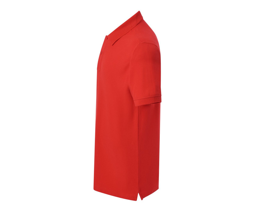 Piqué-Gewebe. Knopfleiste mit zwei Knöpfen. Ärmel und Kragen mit 1x1-Rippbündchen verarbeitet.