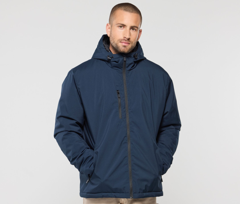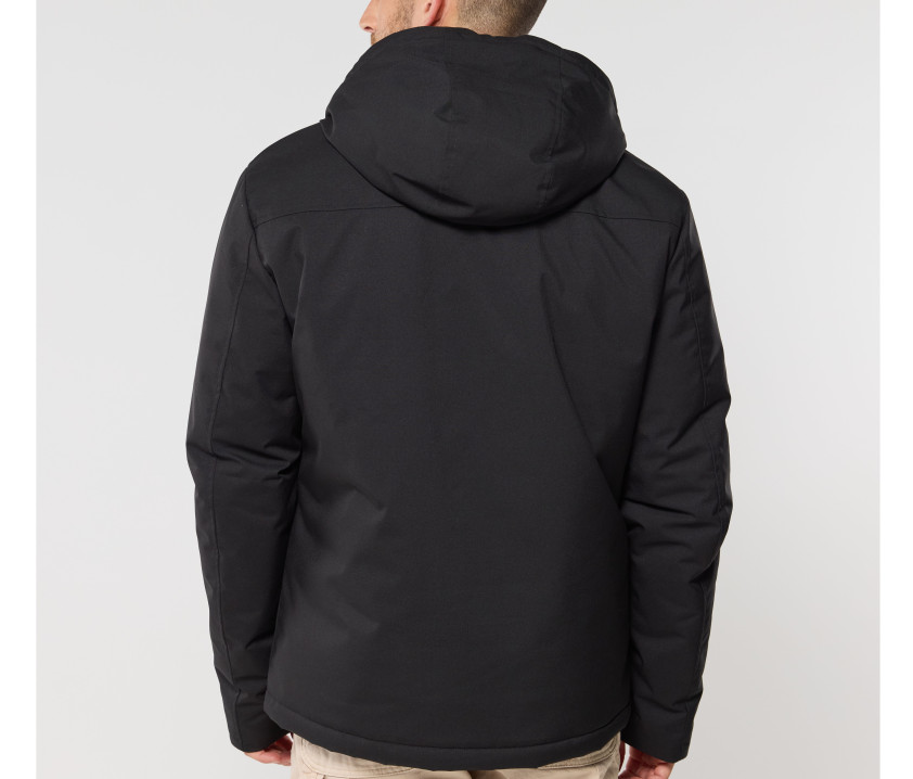 Recycelte Wattierung. Zugang für Markierungen. Umgekehrter Reißverschluss. 2 Taschen mit Reißverschluss. Vorgeformte Kapuze. Innentasche mit Reißverschluss. Wasserdichtigkeit: 4000-5000mm.