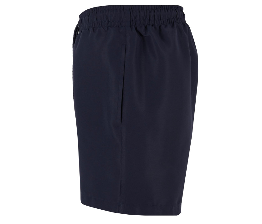 Elastischer Bund mit Kordel. Rückentasche mit Reißverschluss. 2 seitliche Taschen.