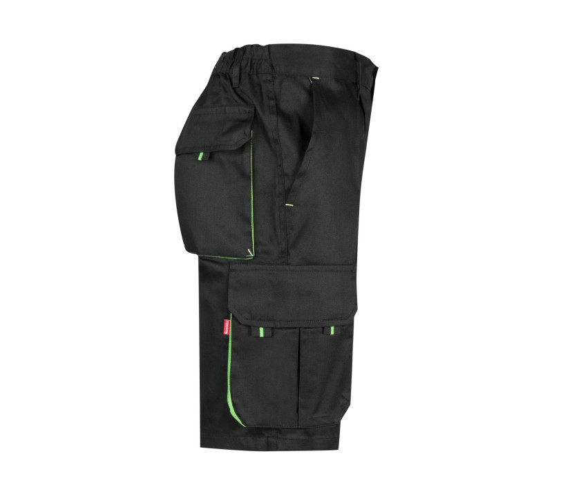 Hosenschlitz mit Knopf und Reißverschluss. Faltenbalge Taschen, Schieber und Nähte kontrastiert. Gewebe hinten verstärkt. Elastischer Bund. Verstärkte Doppelnaht. 6 Taschen: 2 Seitentaschen, 2 Taschen an den Oberschenkeln mit Klappe, Klettverschluss und Ziehern.