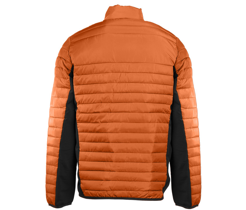 Leichte, modische Daunenjacke aus Bi-Material, anliegende Passform. 2 Seitentaschen mit Reißverschluss. 2 Innentaschen. Kinnschutz. Kontrastierte Reißverschlüsse. Druckfläche vorne 9 cm und hinten 12 cm.