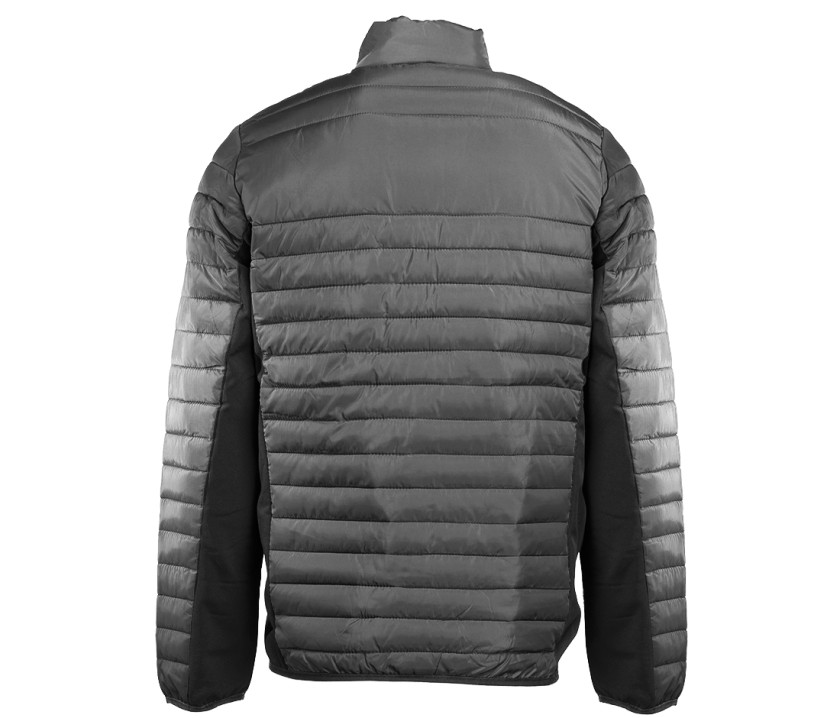 Leichte, modische Daunenjacke aus Bi-Material, anliegende Passform. 2 Seitentaschen mit Reißverschluss. 2 Innentaschen. Kinnschutz. Kontrastierte Reißverschlüsse. Druckfläche vorne 9 cm und hinten 12 cm.