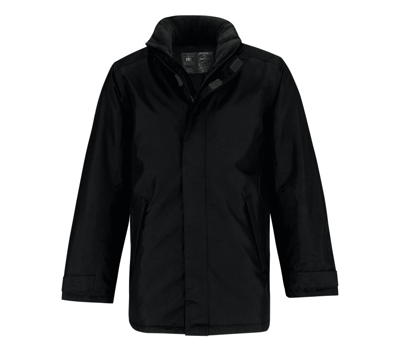 Hoher Kragen und Hälfte des Rückens mit Anti-Pilling-Microfleece gefüttert. Gepolsterte Fütterung aus Polyester und Accessoires farblich passend. Kapuze mit 3 Paneelen, faltbar mit ösen und flachen Zugbändern mit Kunststoffenden. Kinnschutz. Vollständige Öffnung per Reißverschluss vorne, unter der Klappe. Ergonomische Ärmel und artikulierte Ellenbogen. 2 Taschen vorne mit Reißverschluss unter Klappe. 1 Innentasche für Geldbeutel mit Reißverschluss. Verstellbare Bündchen mit Verschlussband. Zugriff für die Personalisierung. Wasserdichtigkeit: 1000mm.