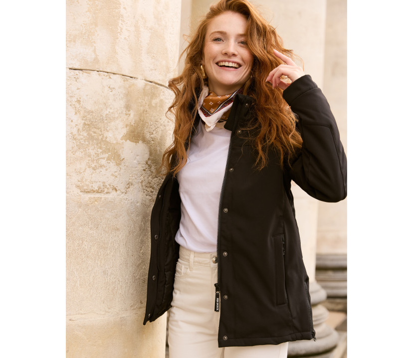 3-lagiger gepolsterter Softshell-Parka für Damen. Anliegende Passform. Brusttasche mit Reißverschluss. 2 Taschen mit Reißverschluss an den Seiten. 2 an den Seiten geöffnete Taschen. Möglichkeit Kapuzen hinzuzufügen Ref. PK995, Ref. PK996 und Ref. PK997 (Reißverschluss im Kragen versteckt). Anschluss für Markierungen am Rücken. Tablet-Tasche innen. Ärmelbündchen mit Klettverschluss-Lasche verstellbar.