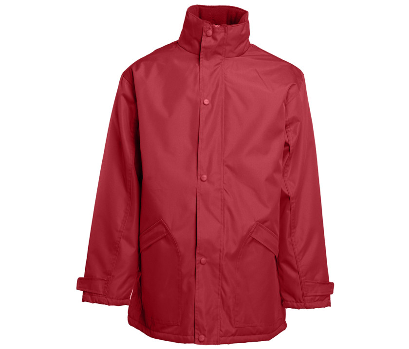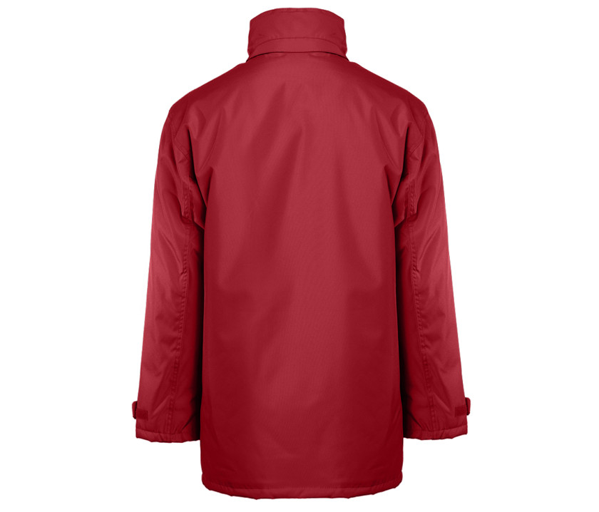 Winddicht mit wasserdichter Beschichtung 1000mm. Kragen mit Fleece-Futter. Klettverschluss an den Ärmeln. 2 Außentaschen mit Reißverschluss. 2 Innentaschen (Geldbeutel und Handy). Kapuze im Kragen. Zugriff für die Personalisierung (linke Seite und Rücken).