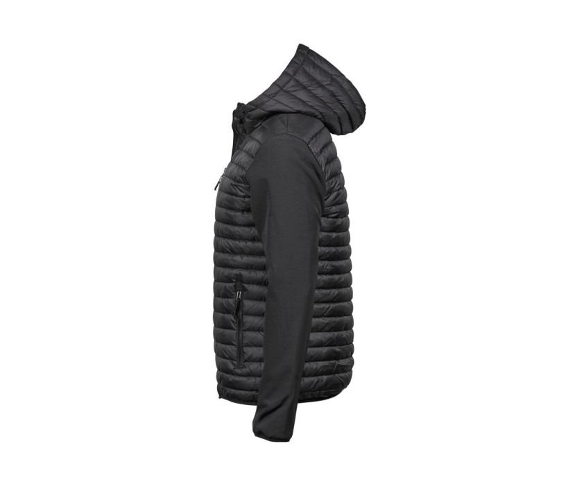 Brusttasche mit Reißverschluss. Verstellbare Kapuze. Hochwertige Reißverschlüsse. Materialmix: gestepptes Polyester und Softshell. Verstellbare Größe. Elastische Ärmelbündchen. 2 große Taschen vorne. Innentasche. Sportlicher Look.