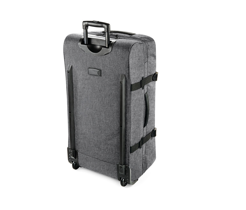 Ablösbares Etikett. Doppeltes Fach. Hauptverschluss mit Reißverschluss, Vorhängeschloss kann benutzt werden (nicht mitgeliefert). Identifikations-Fenster. Abdeckungen der abnehmbaren Griffe. Kompressionsriemen. Einziehbarer Griff. Tragegriff. Griffe an der Seite und oben gepolstert. Integrierte Rollen, sehr widerstandsfähig. Bedruckbare Fläche: 25x25 cm. Kann mit BG485 kombiniert werden.