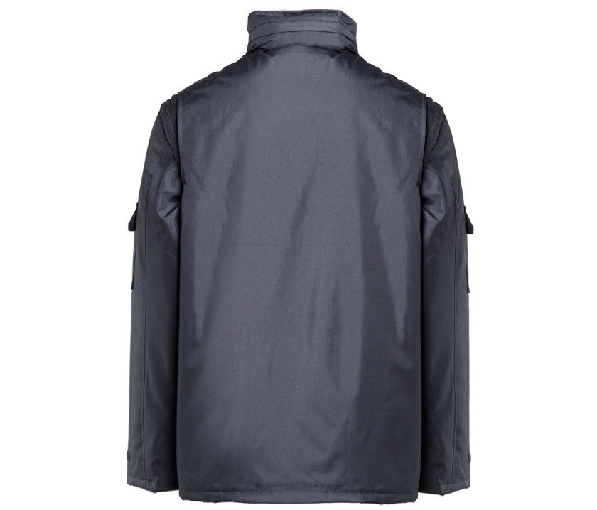 - 4 Außentaschen und 3 Innentaschen. Kapuze im Kragen mit Reißverschluss. Ärmelbündchen mit Klettverschluss verstellbar.