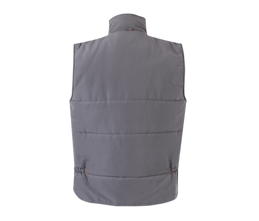 Durchgehender Reißverschluss. Klappe mit Druckknöpfen. Einsätze Windjacke an den Armausschnitten. Faltenbalge der Taschen kontrastiert. Zieher kontrastiert. 7 Taschen: 1 Brusttasche mit Faltenbalg und Klappe, Zieher und Klettverschluss. 2 Vordertaschen mit Faltenbalg und Klappe, Zieher und Klettverschluss und unter jeder 2 Seitentaschen. 1 Brusttasche mit Faltenbalg, mit Klappe, Klettverschluss, Ziehern und Stiftfächern. 1 aufgesetzte Innentasche.