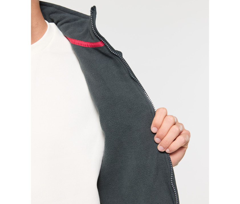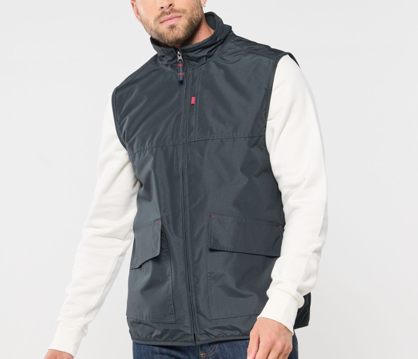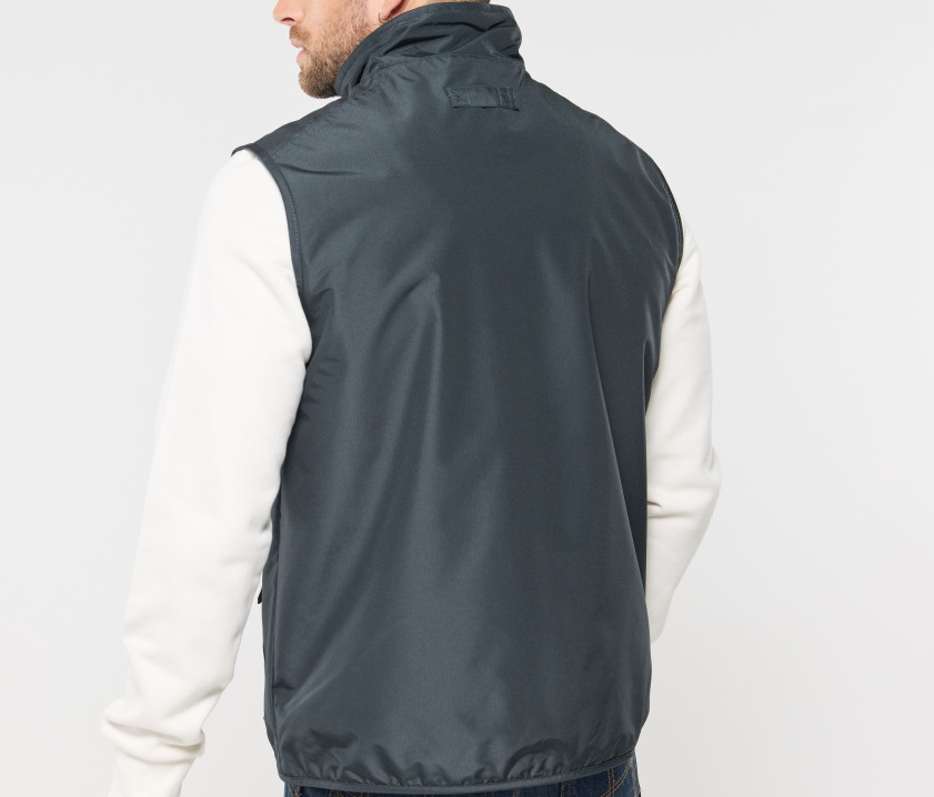 Bodywarmer wasserdicht und solide. Winddicht. 2 Taschen aufgesetzt mit Velcro®. Brusttasche mit Velcro®. Zugriff für die Personalisierung. Fleece-Futter.