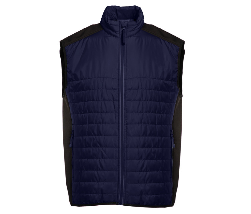 Bodywarmer aus Bi-Material wasserabweisend und winddicht. Modischer Schnitt und Look. Zugriff Markierung Herz. 2 Seitentaschen mit Reißverschluss. Saum reflektierend an den Reißverschlüssen. Rücken vollständig schwarz.